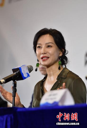 图为第10两届丝绸之道邦际影戏节“金丝道奖”邦际评委会委员、中原优伶王景秋列席“金丝道奖”邦际评委会媒介晤面会。中新社记者 弛斌 摄